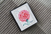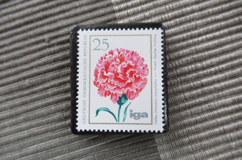 切手の中のお花を見て春の到来を待っているところです。いつも素敵なブローチをありがとうございます。