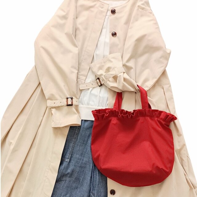フリルトートバッグ レッド 日常使い おでかけ 春 サブバッグ 母の日 ギフト プレゼント 軽量