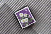切手の中のお花を見て春の到来を待っているところです。いつも素敵なブローチをありがとうございます。
