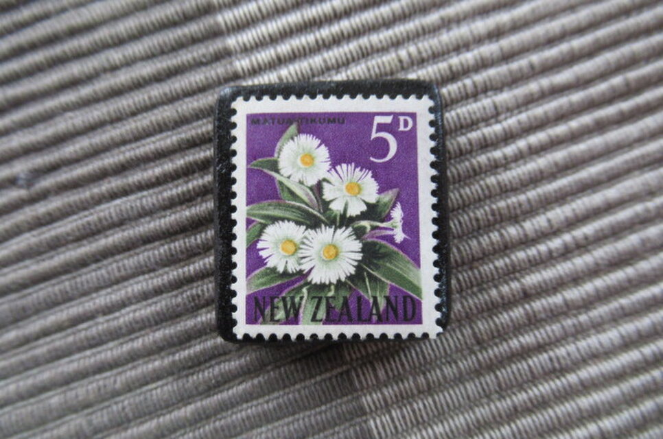 ニュージーランド1960年 花切手ブローチ10853