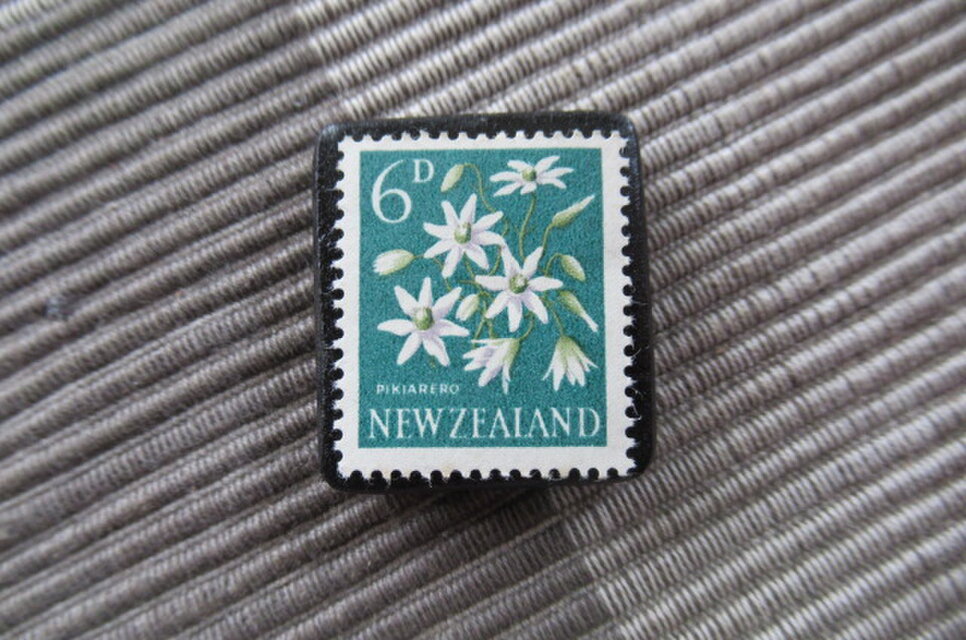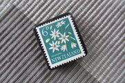 切手の中のお花を見て春の到来を待っているところです。いつも素敵なブローチをありがとうございます。