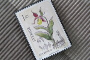 切手の中のお花を見て春の到来を待っているところです。いつも素敵なブローチをありがとうございます。