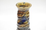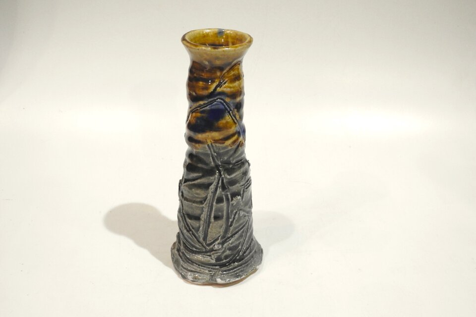 筒形ろくろをひいて櫛目で全体的に動きを出しています