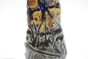 櫛目にかけ分けしている飴釉、緑釉のたまりができ