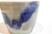 釉薬はうすいトルコ青釉と厚めに青釉を流しかけしています 透明釉とブルー色の流れが窯の火加減で窯変しています サイズ9cmx9cmx7.5cm