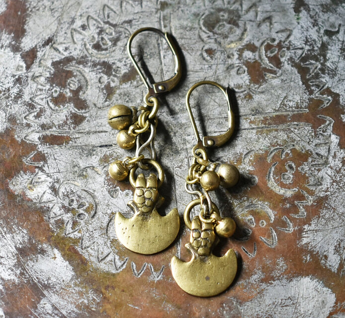 錨型oldインドブラスとまん丸インドブラス、民族鈴のピアス