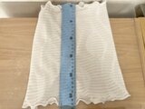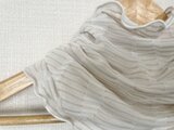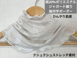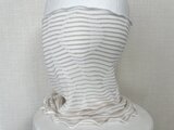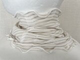 ひんやりシャリ感冷感ハンドメイドネックウォーマー、幾何学ボーダーホワイトベージュ