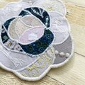一枚一枚を刺繍生地を重ねてバラの形を作り