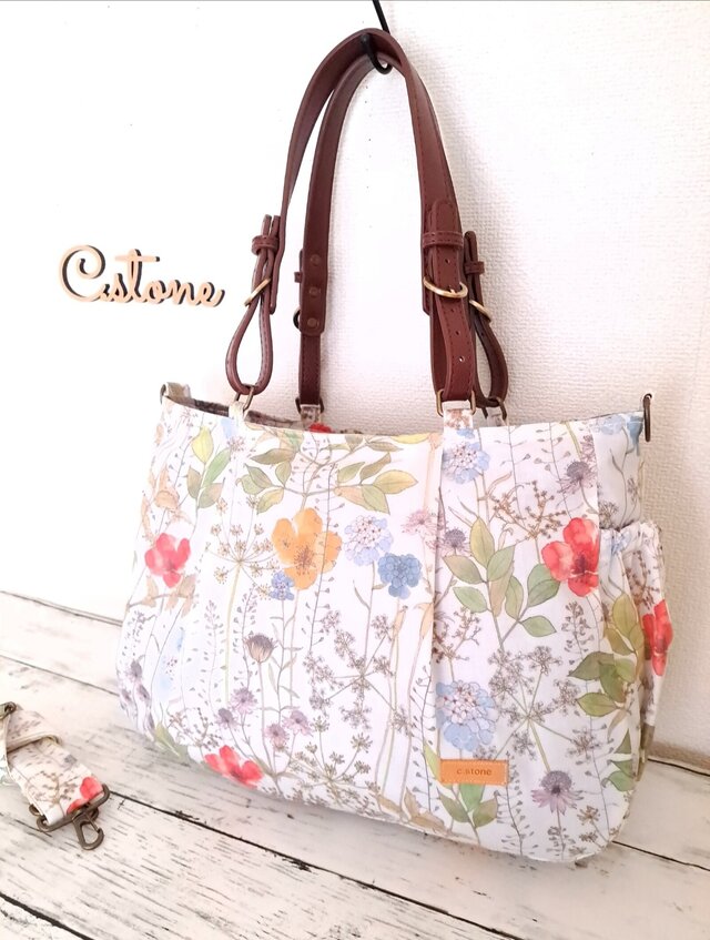 リバティタナローン地につやけしラミネート加工を施したしっとりした質感が魅力の軽量バッグです。