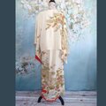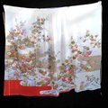 優しい生成り(オフホワイト)の地に、繊細な花々と山水が描かれた伝統的な柄が魅力の1枚です。