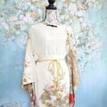 ブラウスはゆったりとした袖とウエストを優しくマークする紐ベルトで、着心地も抜群。