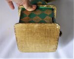 グリーンとゴールド斜め格子文様のデザインが素敵。