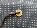 中綿を入れ、黒の正絹の着物で作ったループを付け、ループの先に、古銭の寛永通宝と紅サンゴを付けています。