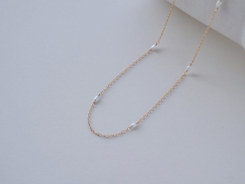 淡雪 | 淡水パールとチェーンの華奢な14kgfネックレス