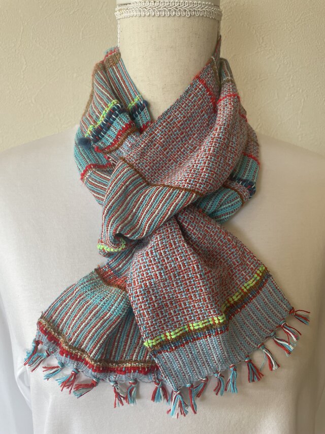 母と姉たちへのプレゼントと自分用に買わせてもらいました。各々好きなものを選んでもらう楽しい企画を考えました。それぞれの好きそうな色合いを選びました。選ぶのも楽しかったです。春先,これをつけると、気分が上がりそうです。 素敵なマフラーをありがとうございました。