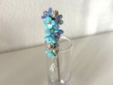 青と水色のグラデーションカラーが美しい紫陽花の様なビーズを鈴生りに繋げてかんざしを制作しました。
