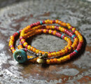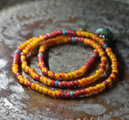 黄色、山吹色、渋い赤色のビーズはホワイトハーツと呼ばれるアンティークビーズです。芯(ハート)部分が白いことからこう呼ばれています。