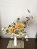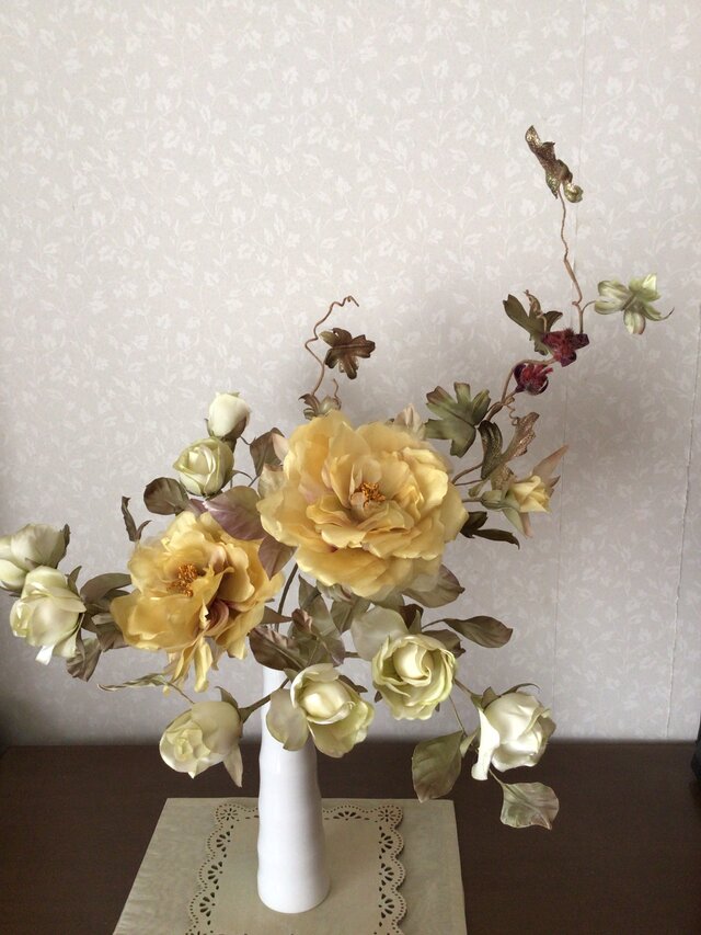 素材をシルクデシンを使って黄色に染めた薔薇にです。