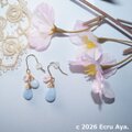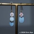 #Ecru #天然石 #イヤリング #ピアス #クィーンコンクシェル #高品質クィーンコンクシェル #オーウィブルーオパール #ブルーオパール #アシンメトリー #空 #春 #桜 #Ecru_春 #Ecru_新作
