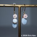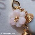 片方は大きなオーウィブルーオパールを下げ、染井吉野のような淡いピンクのクィーンコンクシェルの桜を下げました