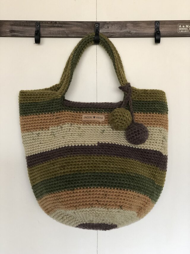 軽くて丈夫!そしてお手入れが楽なアクリル毛糸で、コロンとしたシンプルなバッグを編んでみました。
