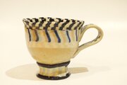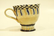 高台の所もストライプ文様の練り込みで仕上げています