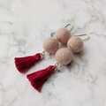淡いくすみピンクの羊毛フェルトボールと手作りタッセルのピアス/イヤリング