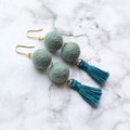 ニュアンスカラーの羊毛フェルトボールと手作りタッセルのピアス/イヤリング