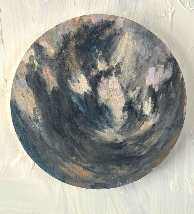 絵画 『空』 油彩 原画 直径30cm 丸形キャンバス N
