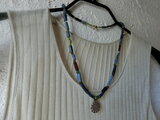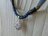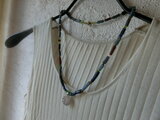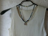 トップ周りにはアジアのナガ族の丸いビーズ、グリーンとブルー系で