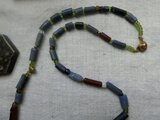 管玉の間にはジャワビーズやヴェネチアの若草色のクリアのビーズを入れてみました。