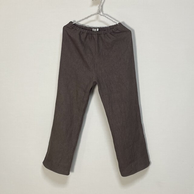 厚手リネン【ドンゴロス】イージーパンツ ストレート・ロング◆ココア◆M・L・LL◆(リネン100%、6番手)