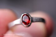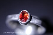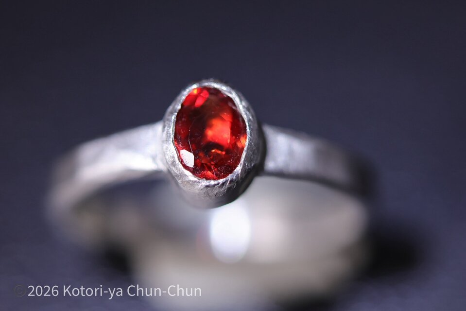 【小鳥屋ジュエリー】ズィーシャンの特注カット レッドオレゴンサンストーン・Pt900リング【紅天狗】