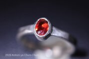 ということで、インドの友人、ズィーシャンに特注でカットしてもらったオレゴンサンストーンの中でもトップクラスに紅いヤツをPt900で作ってみました( ◜ω◝ )