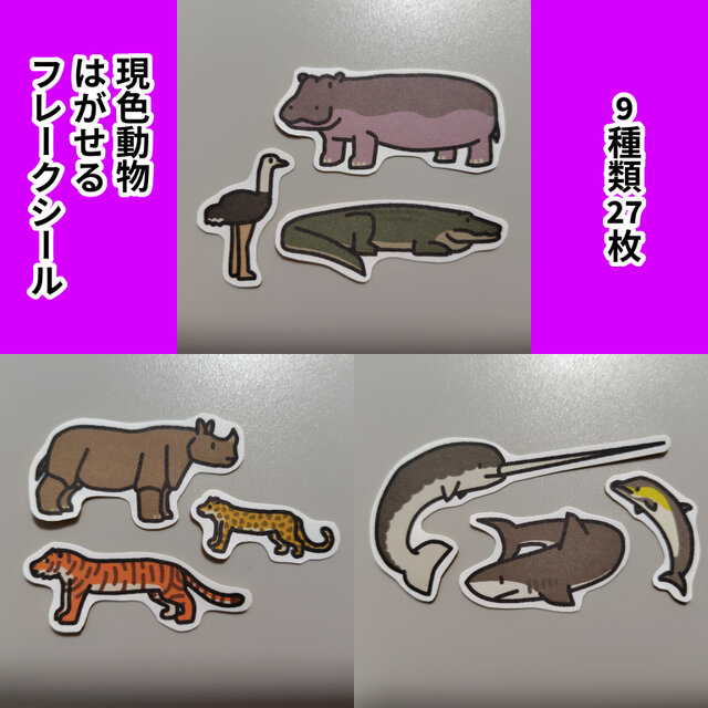 貼り付けてもはがしやすい自然な色合いの動物のフレークシールを作ってみました。