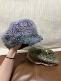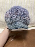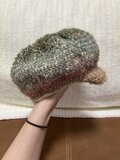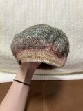 毛足の長い毛糸を使用した、ふわふわ手触りのキャスケットです。