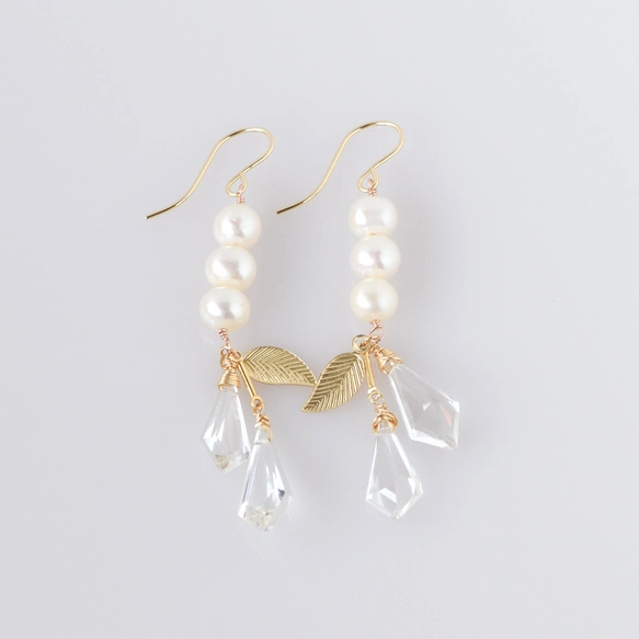 〜〜パールとクリスタルが揺れる瑞々しいピアス。〜〜