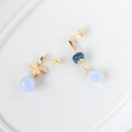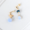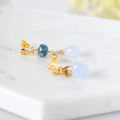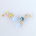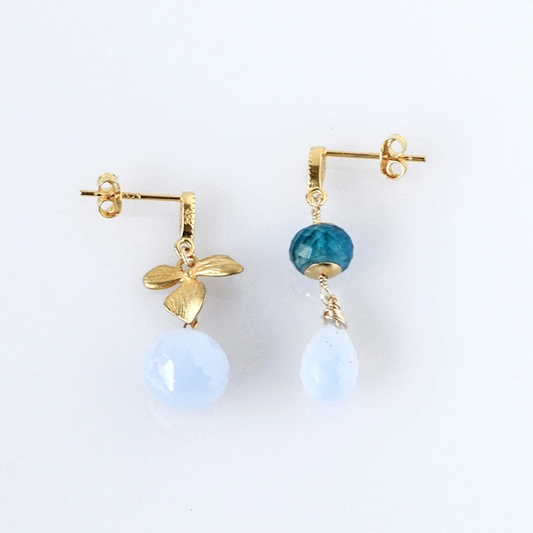 空色の花雫 ― サンタマリアアクアマリンとブルーカルセドニーのアシンメトリーピアス14kgf
