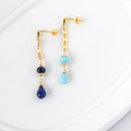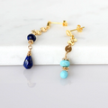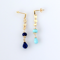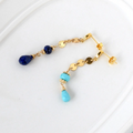 ラピスラズリとスリーピングビューティーターコイズのアシンメトリーピアス14kgf