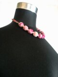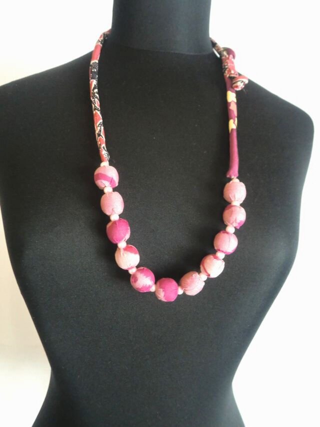 ビーズを挟み、首回りはやはり絹の着物地で