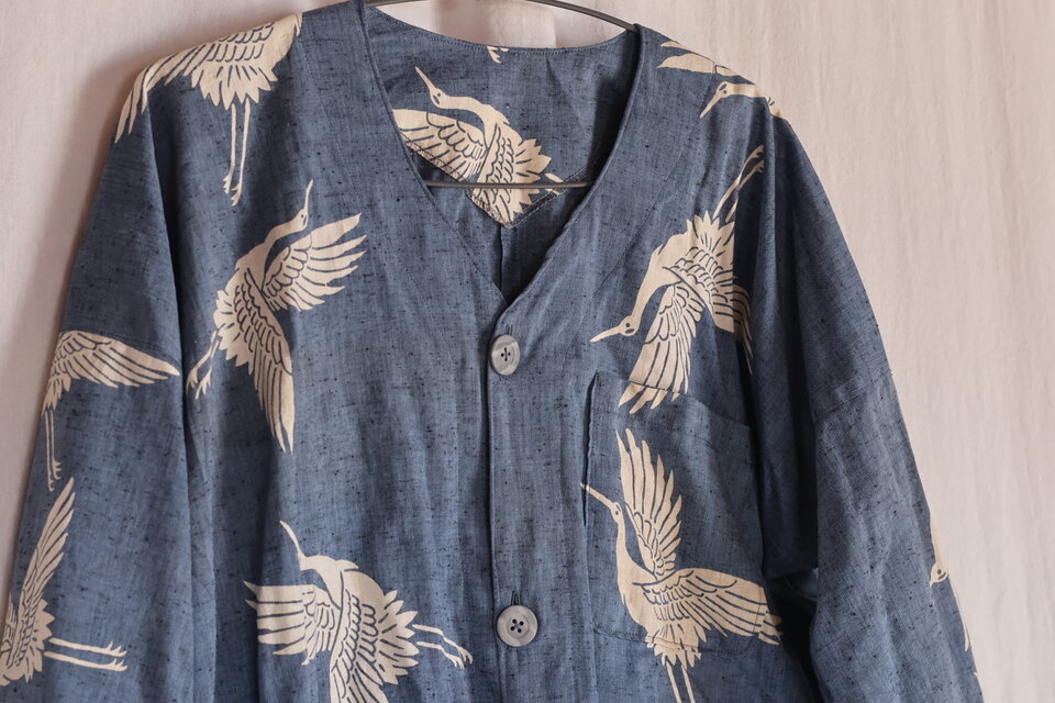 珍しい鶴柄浴衣で作ったダボシャツ