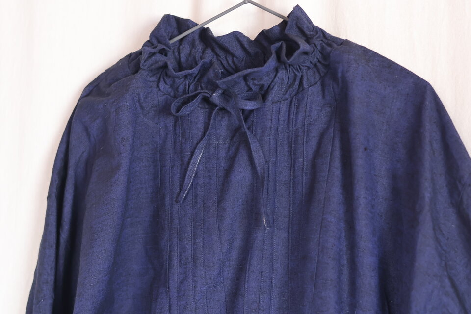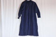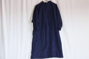 藍無地紬着物のリメイク、ボウタイのワンピース