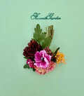 ピンクのフラワーにイエローとブラウンの花を添えています。