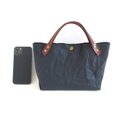 ◎薄くて軽いネイビーのウォッシャブルレザーにしなやかなブラウンのハンドルを合わせました♪