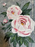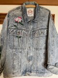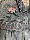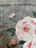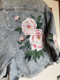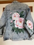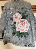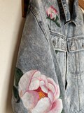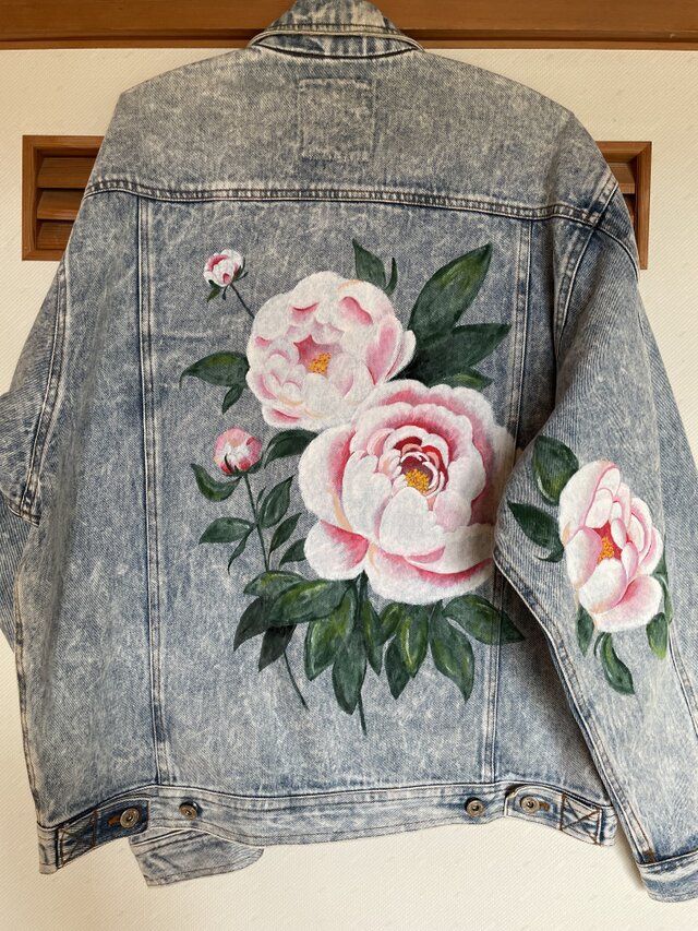 メンズのLサイズのデニムジャケットに華麗な牡丹と薔薇を描きました。