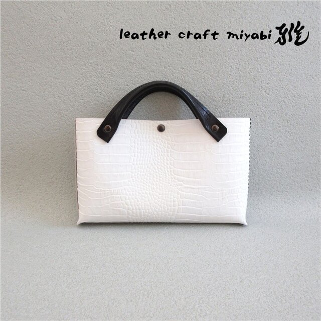 ☆ホワイトの型押しクロコにブラックのハンドルとステッチを合わせて上品な雰囲気に仕上げました(^^/