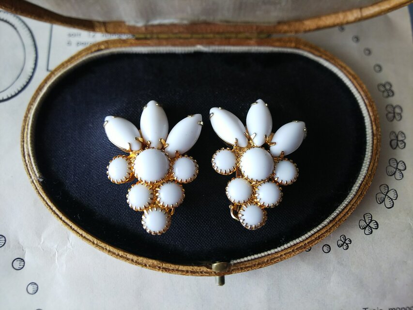 1950-60年代頃のヴィンテージ、愛らしいミルクGlassのイヤリングです。