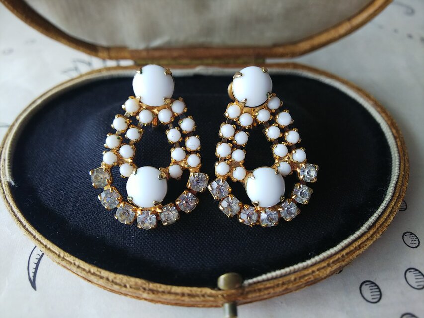 1950-60年代頃のヴィンテージ、愛らしいミルクGlassのイヤリングです。