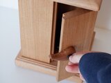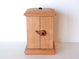 扉には曲玉(まがたま)を模した杢(もく)の入ったつまみを付けました。