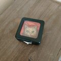 瞳は、天然の琥珀(アンバー)砕いた小さな粒を下に、その上にゴールドラメを乗せてます。瞳の中央部分にのみ、グリーンの宝石パウダー(グリーンフローライトを砕いてラメパウダーとブレンドしたもの)を少し乗せました。(レジンでしっかり固めています)